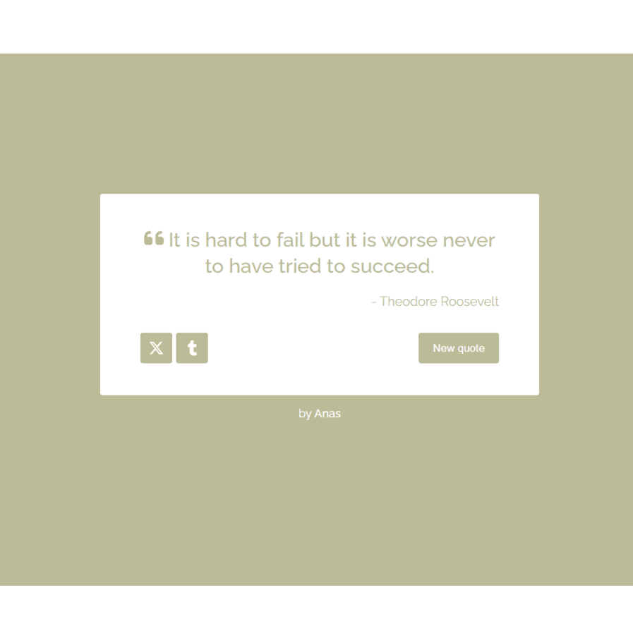 Dive into my "Random Quote Machine" project — a visually striking, responsive web design that delivers inspiration with every click. Explore a curated collection of quotes by famous figures, dynamically generated at the touch of a button. The added feature lets users effortlessly share their favorite quotes on Twitter or Tumblr, adding a social dimension to this engaging and user-friendly project. Witness my commitment to creating not just functional but aesthetically pleasing web experiences.